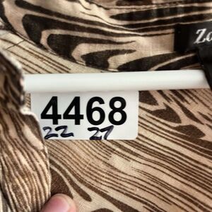 Vtg Zoe D. Animal Print 100% Linen Button Front Blouse Large Brown Classic Work