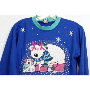 Vtg Zoodles 2pc Sweatshirt Leggings Polar Bear Snowflakes Stripes sz 14 Winter