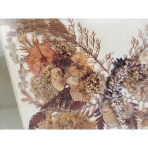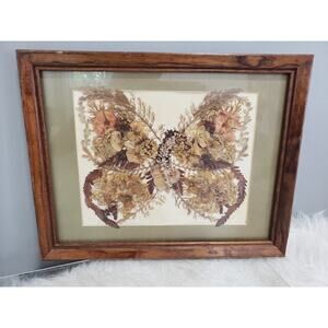 Stunning vintage framed pressed / dried flowers shaped like a butterfly - This piece displays beautifully, it measure approx 11.25 inches x 14.25 inches including the frame.