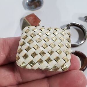 Vtg crafting lot of 11 Earrings clip-on / post / screwback button hoop enamel weave rhineston. Variety of interesting vintage earrings, only 1 is a post all the others are clip-on and screwback. All singles, mix and match, replacement, craft, repurpose. One marked Hong Kong, all others are unmarked.