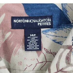 Norton McNaughton Petites Linen Blend Leaf Blouse Short Sleeve Size 14P