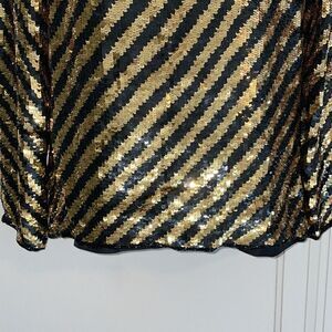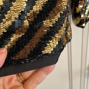 Vtg gold & black sequin striped dressy long sleeve blouse