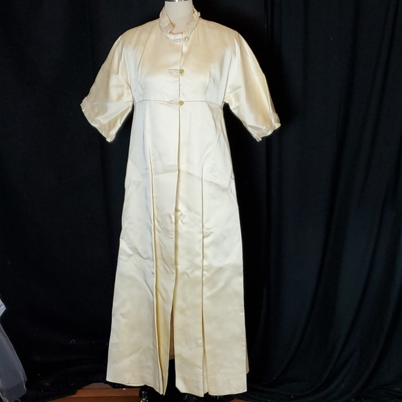 Vtg heavy satin bridal coat, S/M, cream, wedding