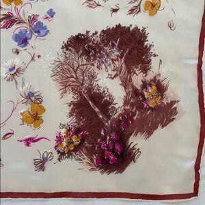 Vtg landscape design silk satin scarf brown border