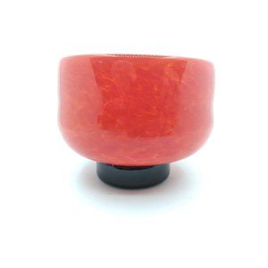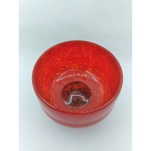 Vtg. lava red speckled art glass handblown footed on black glass candle votive vase signed O'dell '96. Has a a slight biocave shape. Measures approximately 3.15" tall and almost 3.50" across. Pre owned good condition. For more details, please study all pictures.