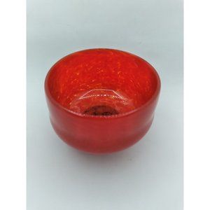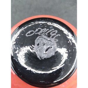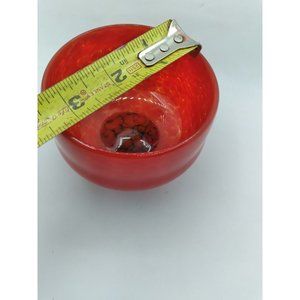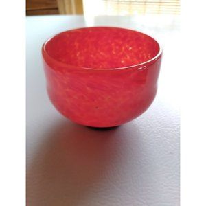 Vtg. lava red speckled art glass handblown footed votive vase signed O'dell 96