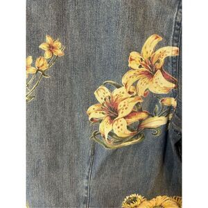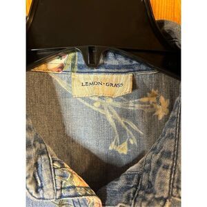 Vtg lemon grass floral denim button front shirt 90s Y2K boho cottagecore Size Me