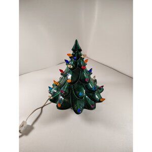 Vtg lighted Christmas Tree Ceramic Green 11.5"T WHITEHORSE with base WORKS