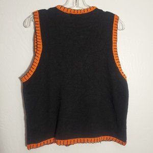 Vtg medium Halloween Vest knit with embroidered pumpkin witches