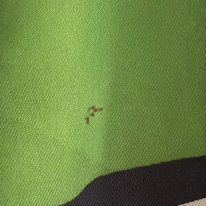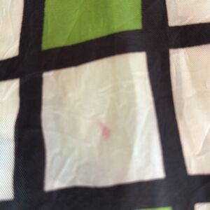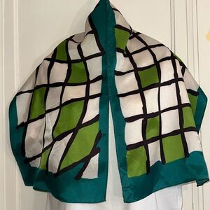 Vtg mid century mod white, black & green print square polyester rectangle scarf