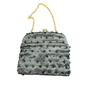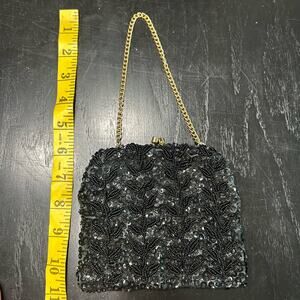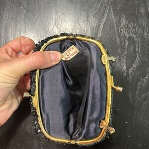 This vintage black beaded clutch is perfect for evening events. Its intricate design adds a touch of sophistication to any outfit.