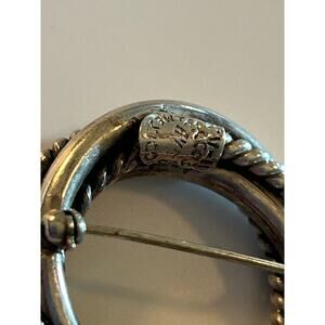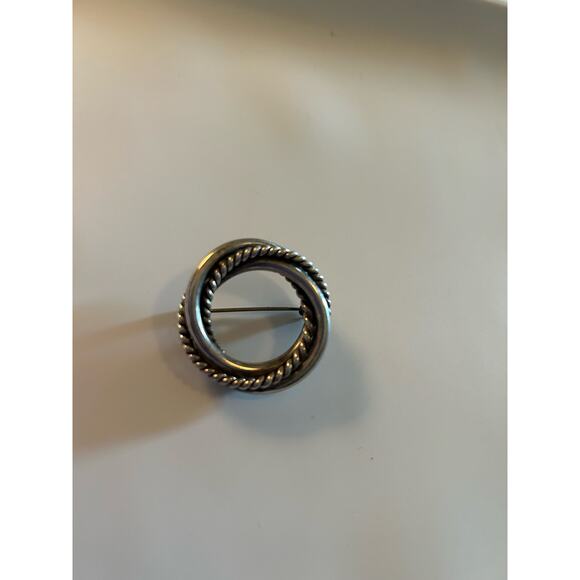 Sterling silver pin in a circular design. I could read 925 and TV11 and mexico, there is some other wording I wasn't able to clearly interpret.