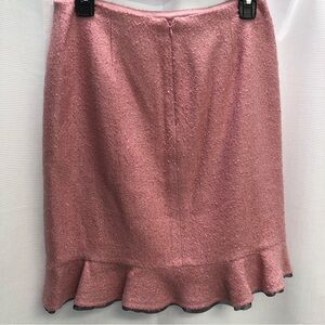 Vtg Peck and Peck Pink lined skirt ruffle hem with black trim.