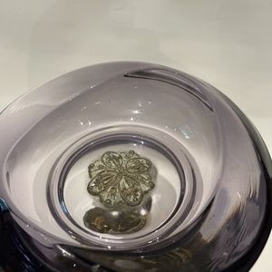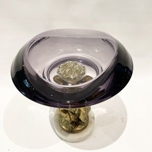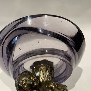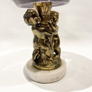 Vtg regency AMETHYST GLASS dish Compote Bowl footed Marble Brass Cherub Art Deco