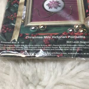 Vtg sealed Christmas Mini Victorian Poinsettia Ribbon embroidery kit needlework