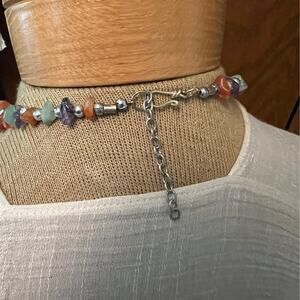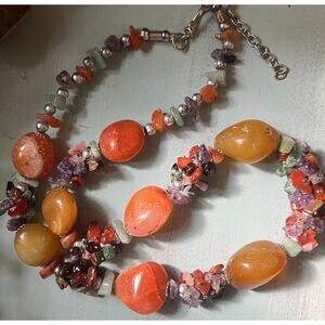 Vintage semi precious stone chunky statement necklace agate amethyst quartz cluster
