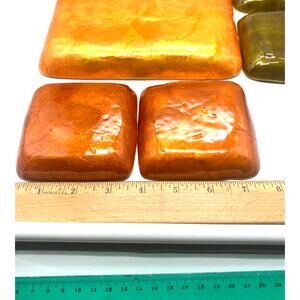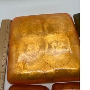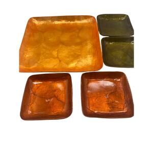 Vtg set 5 pc COLORIZED CAPIZ SHELL tray & plates.Orange,Green,Gold Mascagni look