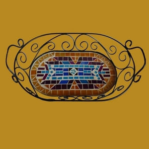 Vtg southwestern design mosaic metal serving tray multicolor in good condition without box from smoke and pet free home.0766