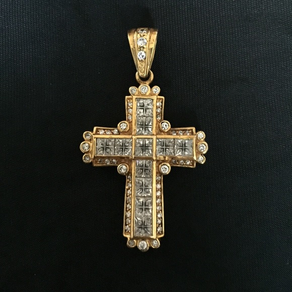 Dazzling vintage vermeil cross pendant featuring clear, sparkling crystals. This piece is solid and extremely well made. No missing stones. I believe the bale may be marked on the inside, but I cannot read it! This is a stunning keepsake. (GSLSIS) Reasonable offers welcome.