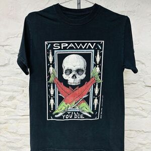 Vtg y2k 2002 Ray Troll Spawn Till You Die Color Graphic T-shirt Distressed Faded. No tag, listed as small based on hand measurements. See below for best fit.