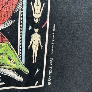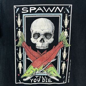 Vtg y2k 2002 Ray Troll Spawn Till You Die Color Graphic T-shirt Distressed Faded