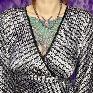 Vtg y2k silky wrap style top retro geometric print with flared 3/4 sleeve.