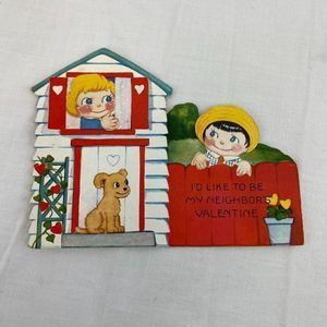 Vtg 1930s 1932 Valentine's Day Holiday Neighbor Children Dog Card