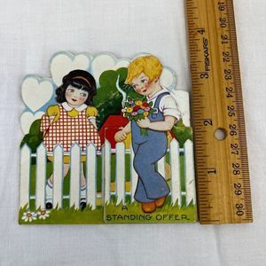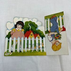 Vtg 1930s 1933 Valentine's Day Holiday Picket Fence Children Folding Card