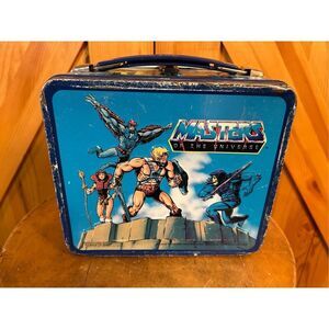 Vtg 1983 Masters of The Universe He-Man Metal Lunchbox MOTU Skeletor Aladdin NO THERMOS has wear/marks throughout see pictures handle, and latch works as it should (8155)