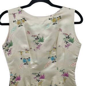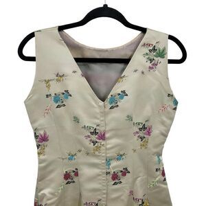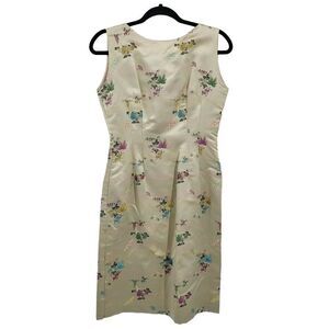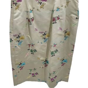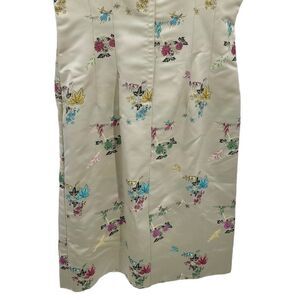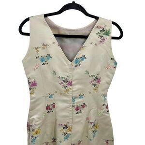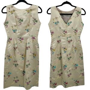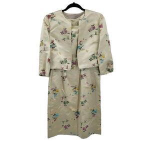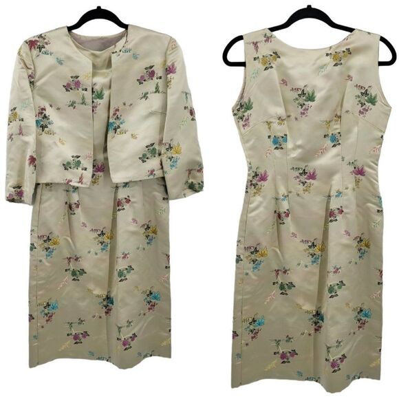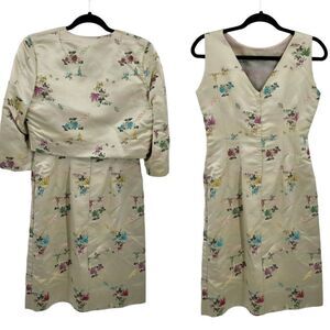 Vtg 60's Womens Dress 2pc Set Asian Satin Sheath Bolero Jacket Gold Floral Sz M