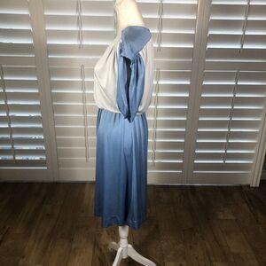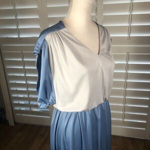 Vtg 70 Act I Blue Silver Blouson Disco Polyester Dress Medium Stretch 1/2 Sleeve
