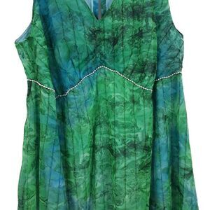 Watercolor tie-dye metallic fringe striping sleeveless V-neck empire beaded Accent Keyhole cutout back maxi Mu Mu Dress back zipper entry handmade.