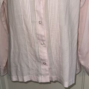 Vintage 70s Panther Light Pink Polyester/Rayon Pleat Front Button-Up Shirt with Removable Bow Tie