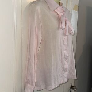 Vtg 70s Panther Light Pink Polyester/Rayon Button-Up Shirt/Removable Bow Tie