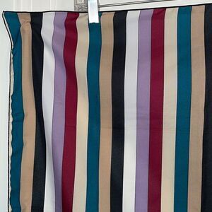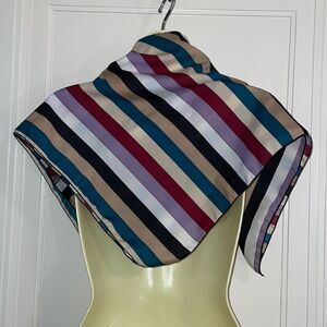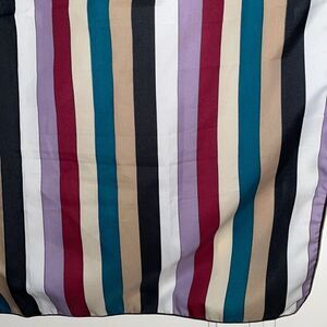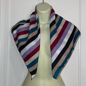 Vtg 70s/80s green,tan, black, white, lavender & maroon striped polyester square scarf