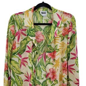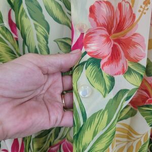 Vtg 70's Leslie Fay Duster Coverup Coconut Girl Tropical Pink Lily Yellow 10P