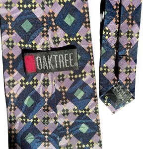 Vtg Purple and Blue diamond patterned tie - Oaktree. Polyester with the feel of silk.