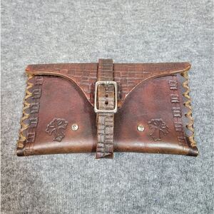 Vtg 80's Cowboy Holder Pouch Brown Leather Handmade Buckle Western Wallet