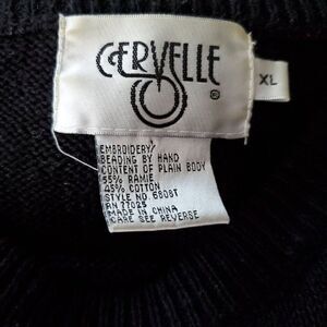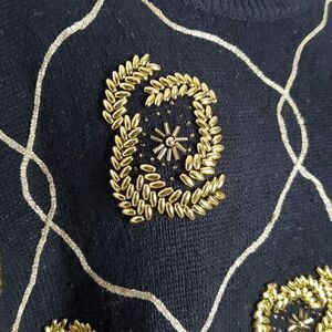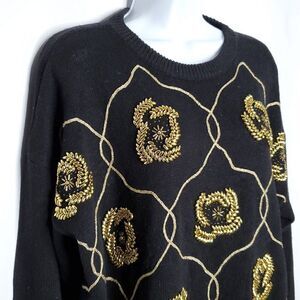Vtg 80s Womens Hand Beaded Sweater XL Black Goldtone Embellished