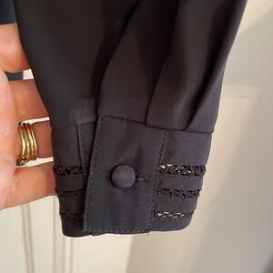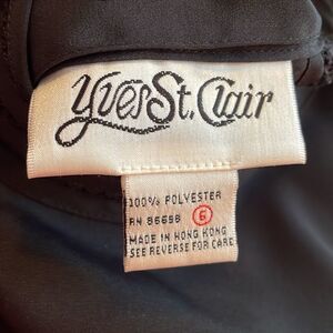 Vintage 80s Yves St. Clair black long sleeved polyester blouse with lace detailing at neck & cuffs