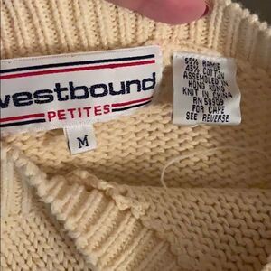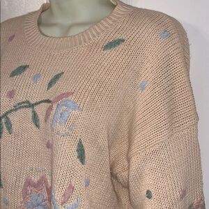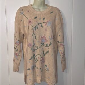 Vintage late 80s/early 90s Westbound Petites cream colored long ramie/cotton sweater with floral embroidery