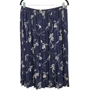 Vtg 80's Alfred Dunner Skirt Sheer Accordion Pleated Midi Novelty Bow Navy Sz M