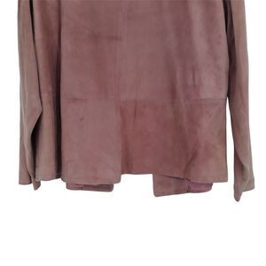 Super soft suede leather dusty pink mauve fully lined open cardigan jacket made by Anne Klein 1976 union tag.