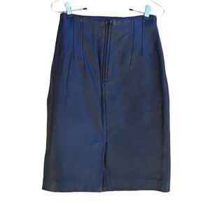 Vtg 80's Luis Alvear Skirt Edgy Career Leather Straight Knee Length Black Sz 4