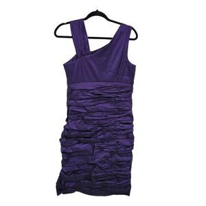 Vtg 90s J. Taylor Dress Formal Ruched Asymmetrical Bodycon Metallic Purple Sz 10
