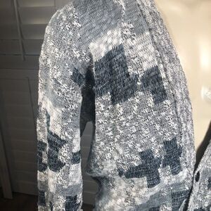 Beautiful and soft grandpa cardigan sweater. Patched of white, gray and blue. V neck, button front. Great condition. Medium.