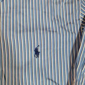 Vtg 90's Polo Ralph Lauren Mens Button Down Shirt Classi Fit Size M Blue Striped Good Condition See Pictures For More Details.