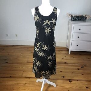 Vtg 90s Sheri Martin Black Floral Chiffon Sheath Dress SZ 8 Sleeveless Slip Cute