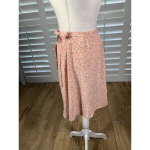 Vtg 90s Streetwear Peach Floral Print A-Line Wrap Mini Skirt Small Rayon Buffy