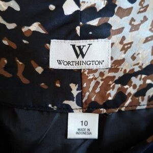 Vintage Sateen abstract animal snake reptile print full Aline front button down skirt with pockets by Worthington.